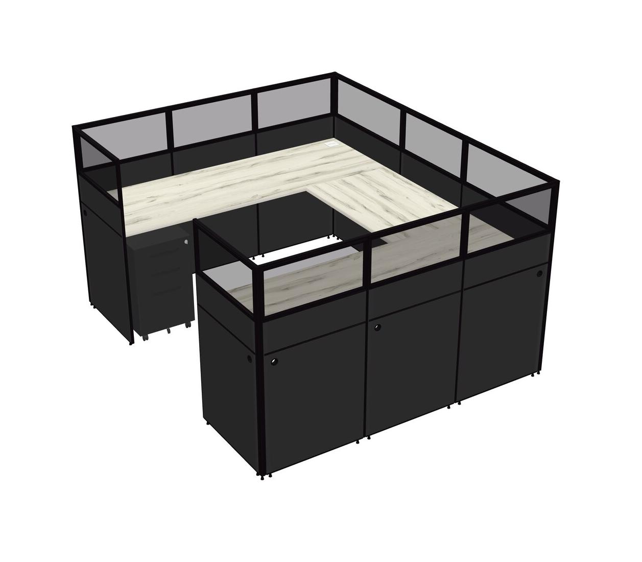 Heinne Holz U-shaped Panel System For 1 Person + Metal Mobile Drawers For 1 User(s)