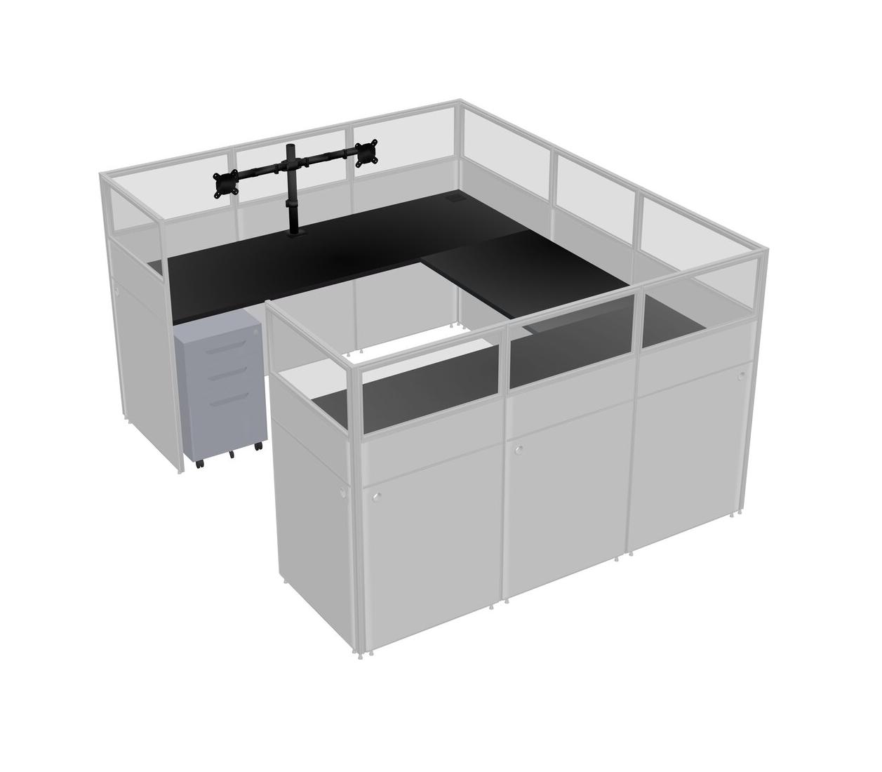 Black U-shaped Panel System For 1 Person + Monitor Arm (double Arms) + Metal Mobile Drawers For 1 User(s)