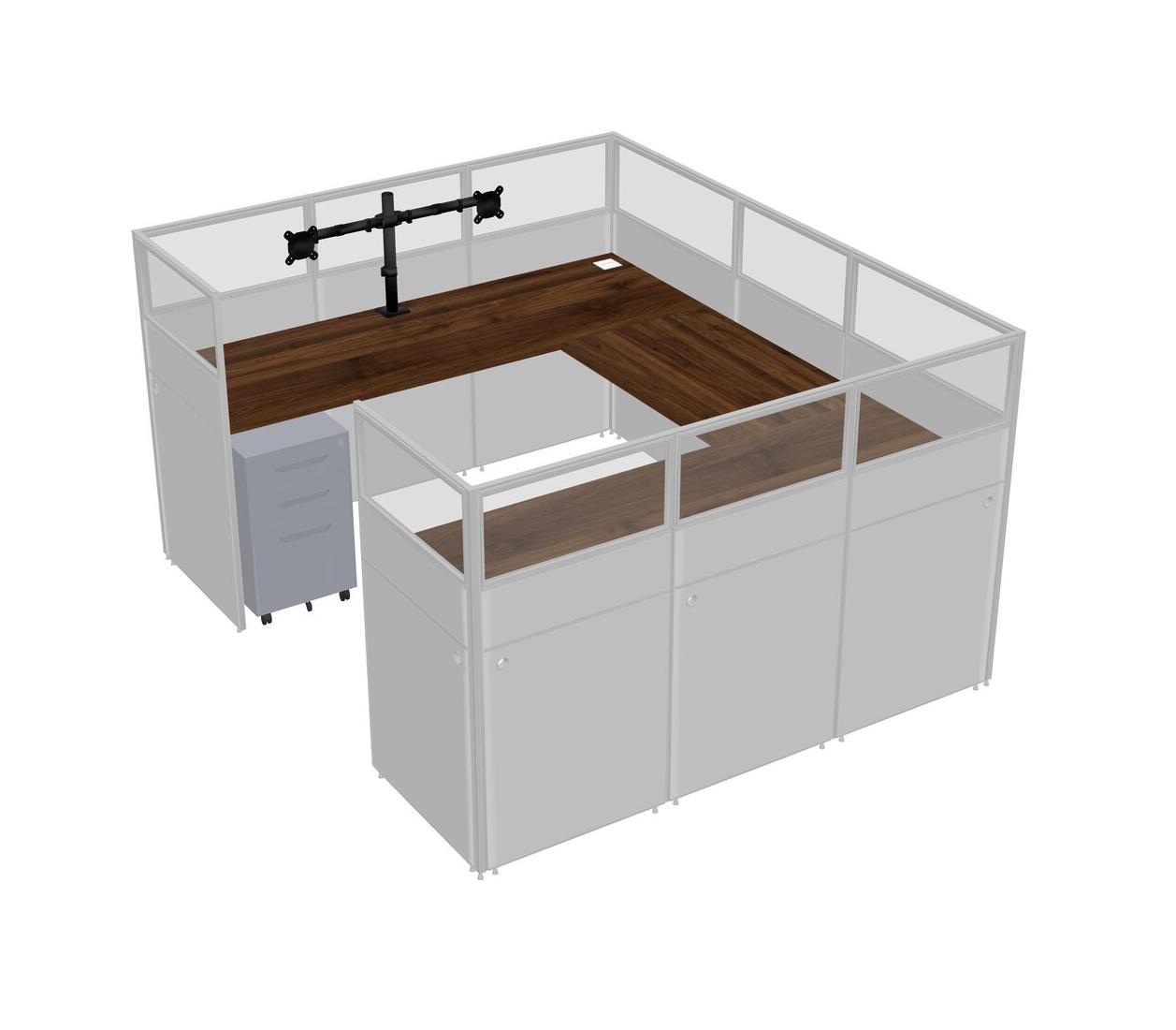 Columbia Walnut U-shaped Panel System For 1 Person + Monitor Arm (double Arms) + Metal Mobile Drawers For 1 User(s)