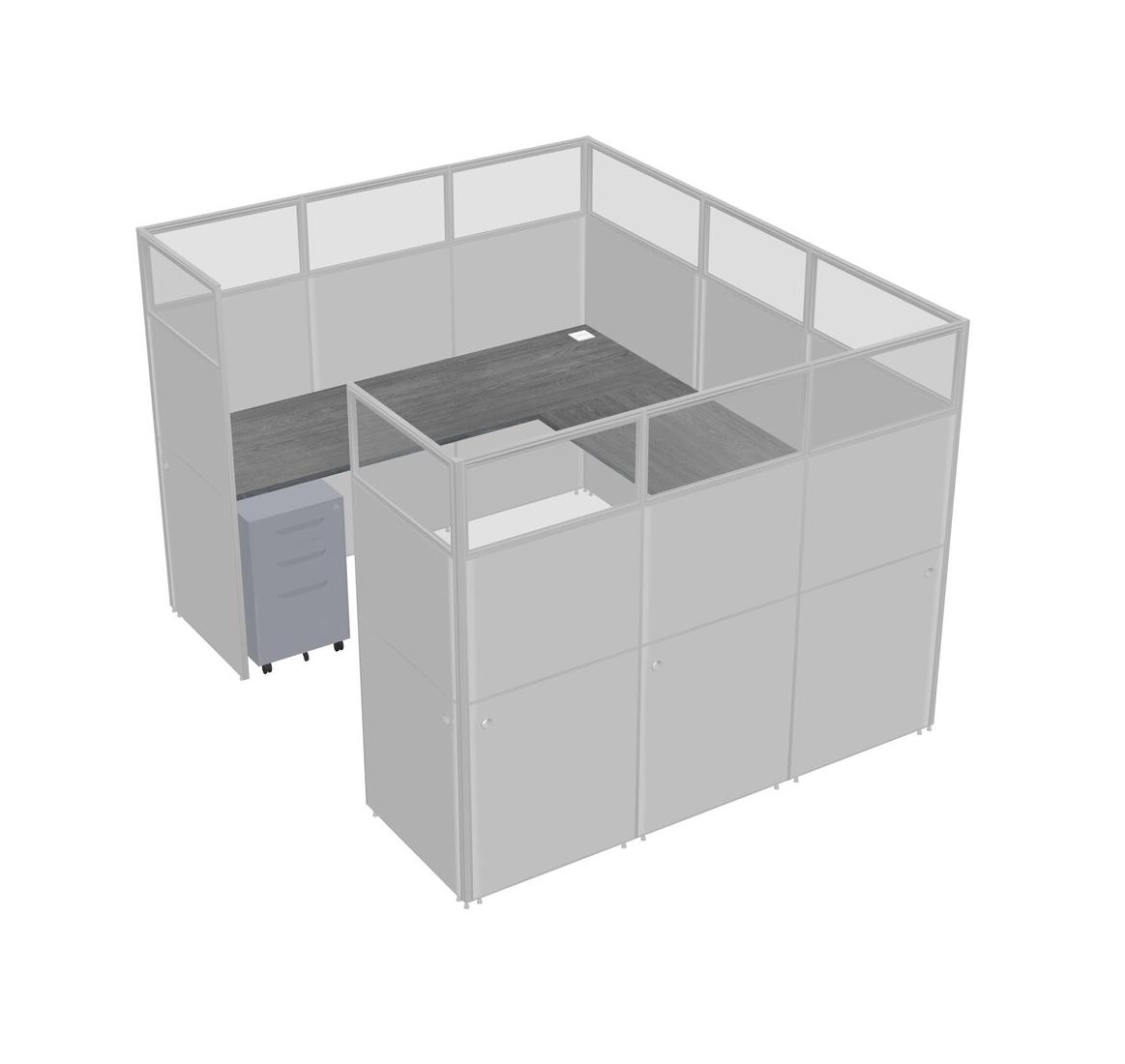 Grey U-shaped Panel System For 1 Person + Metal Mobile Drawers For 1 User(s)