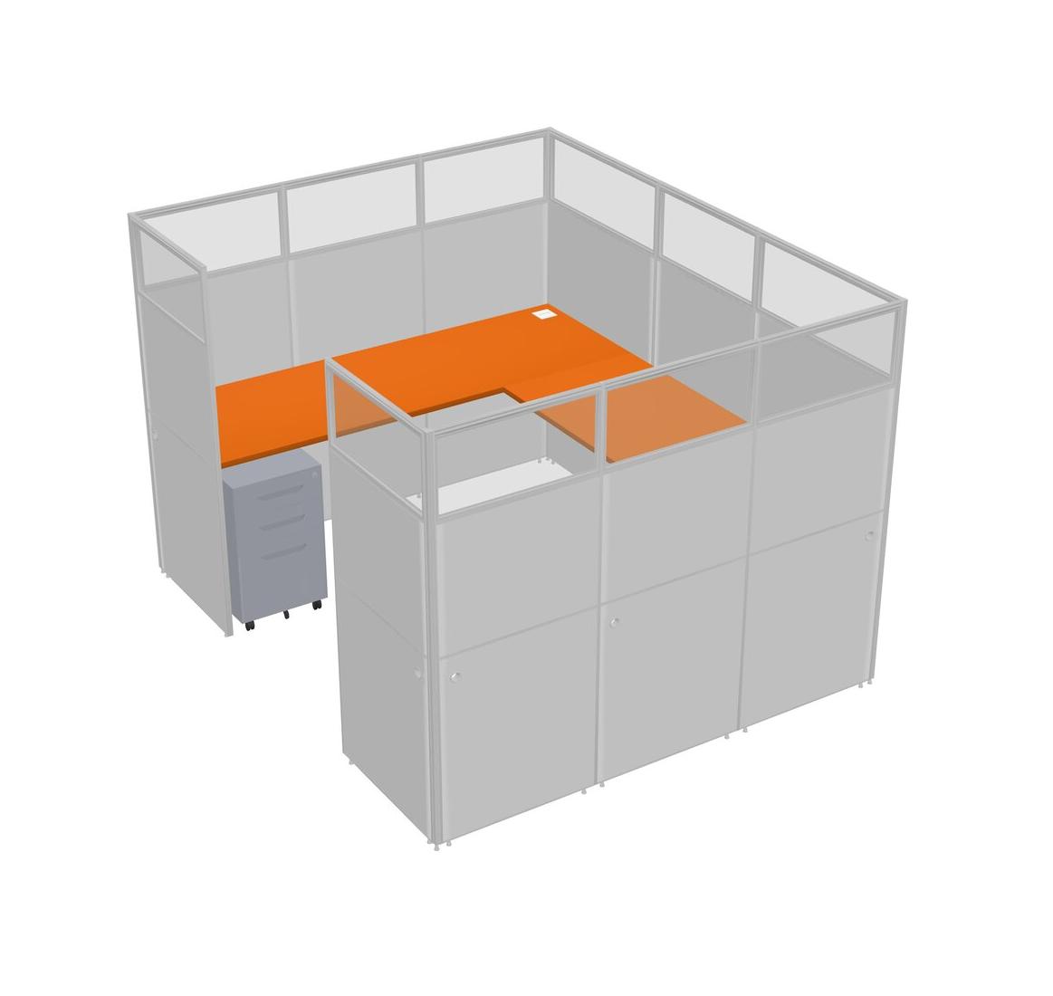 Orange U-shaped Panel System For 1 Person + Metal Mobile Drawers For 1 User(s)