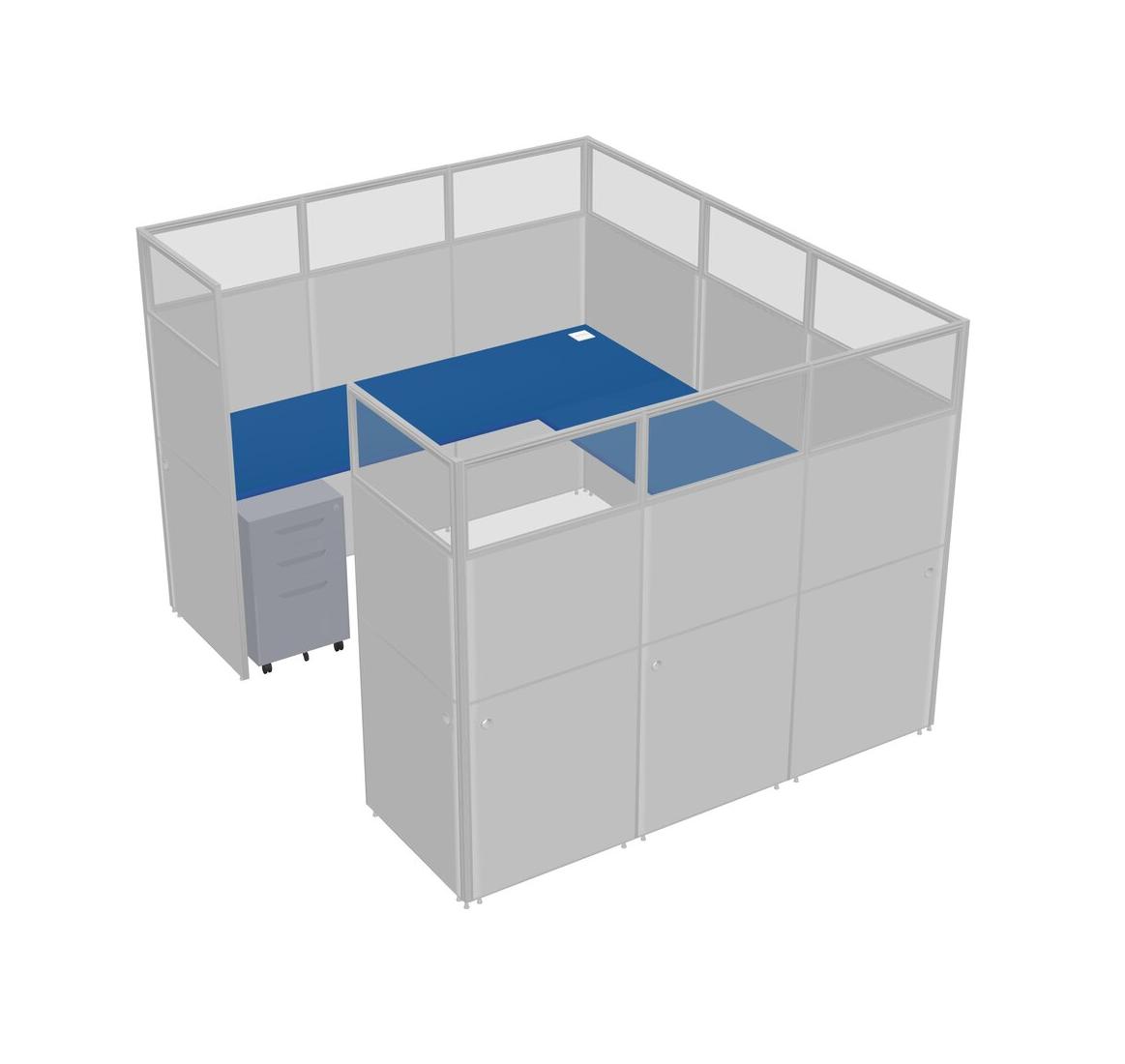 Prism Blue U-shaped Panel System For 1 Person + Metal Mobile Drawers For 1 User(s)