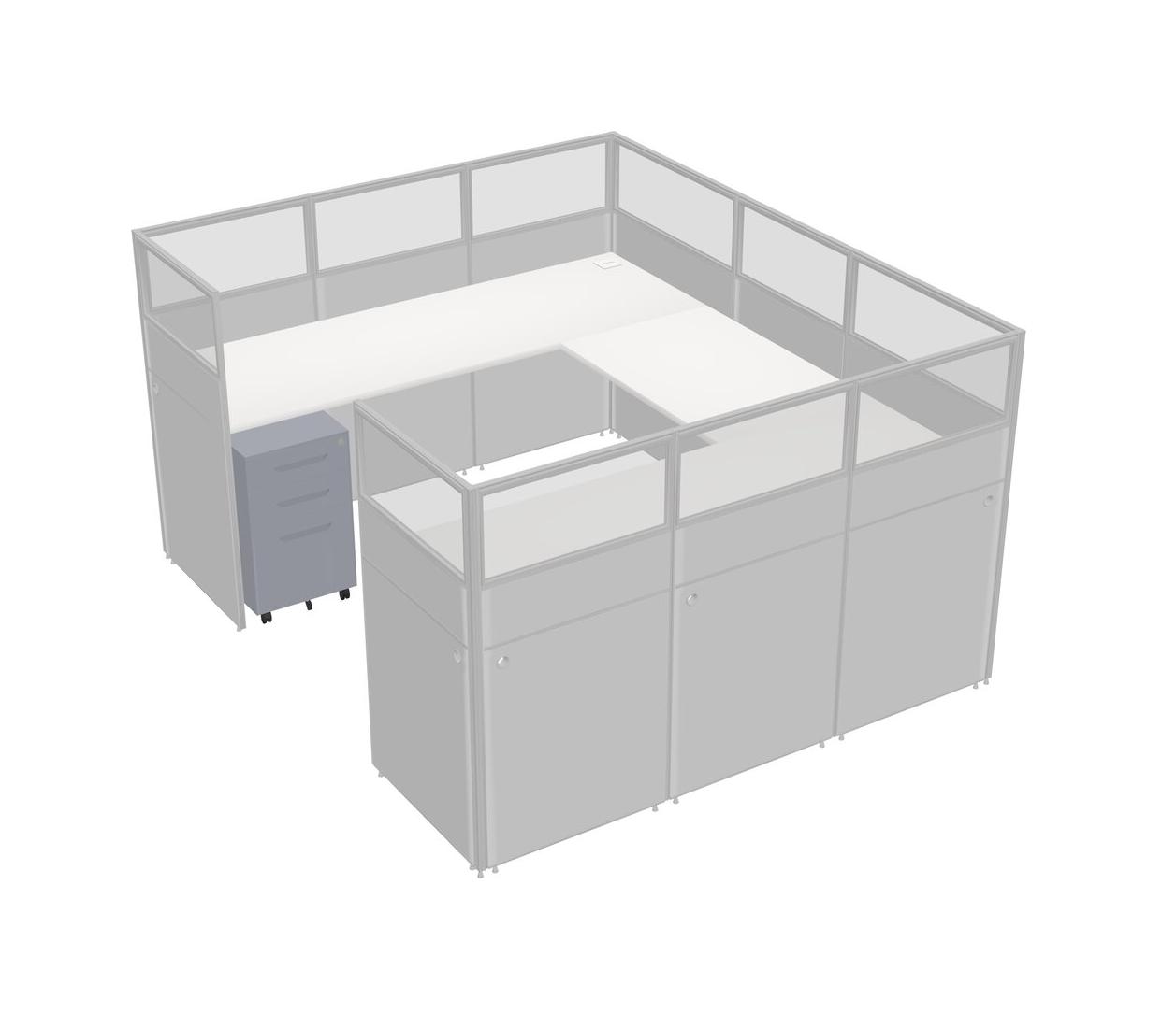 White U-shaped Panel System For 1 Person + Metal Mobile Drawers For 1 User(s)
