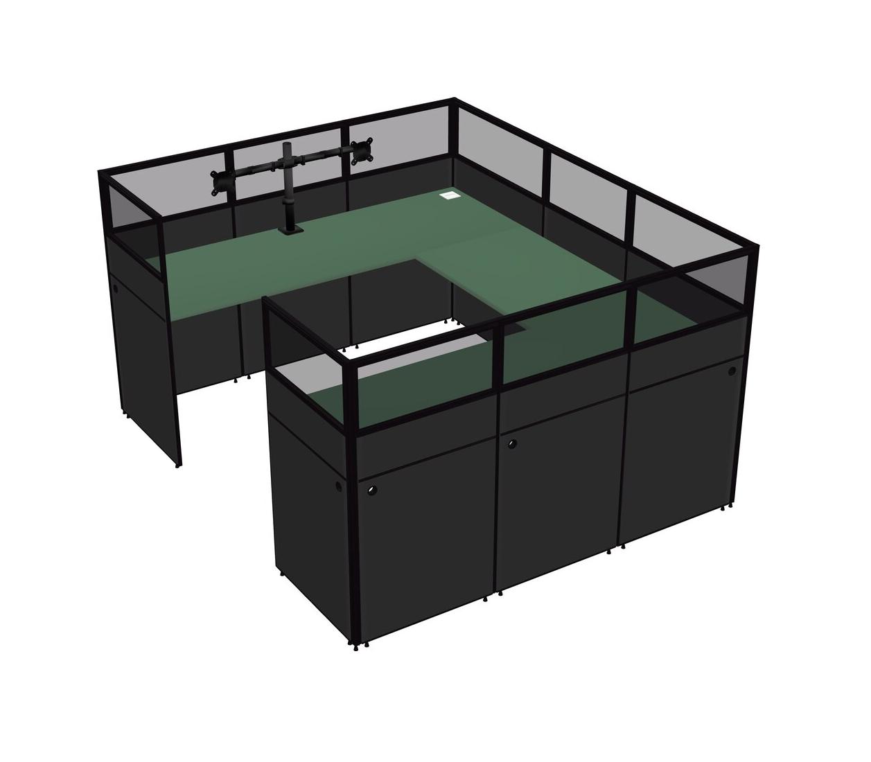 Green U-shaped Panel System For 1 Person + Monitor Arm (double Arms) For 1 User(s)