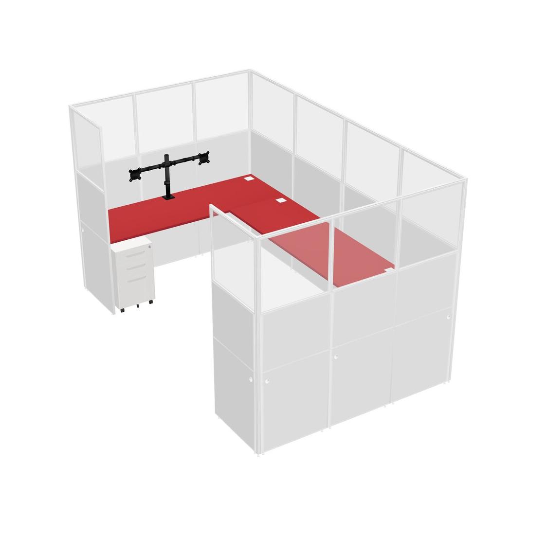 Prism Red U-shaped Panel System For 1 Person + Monitor Arm (double Arms) + Metal Mobile Drawers For 1 User(s)