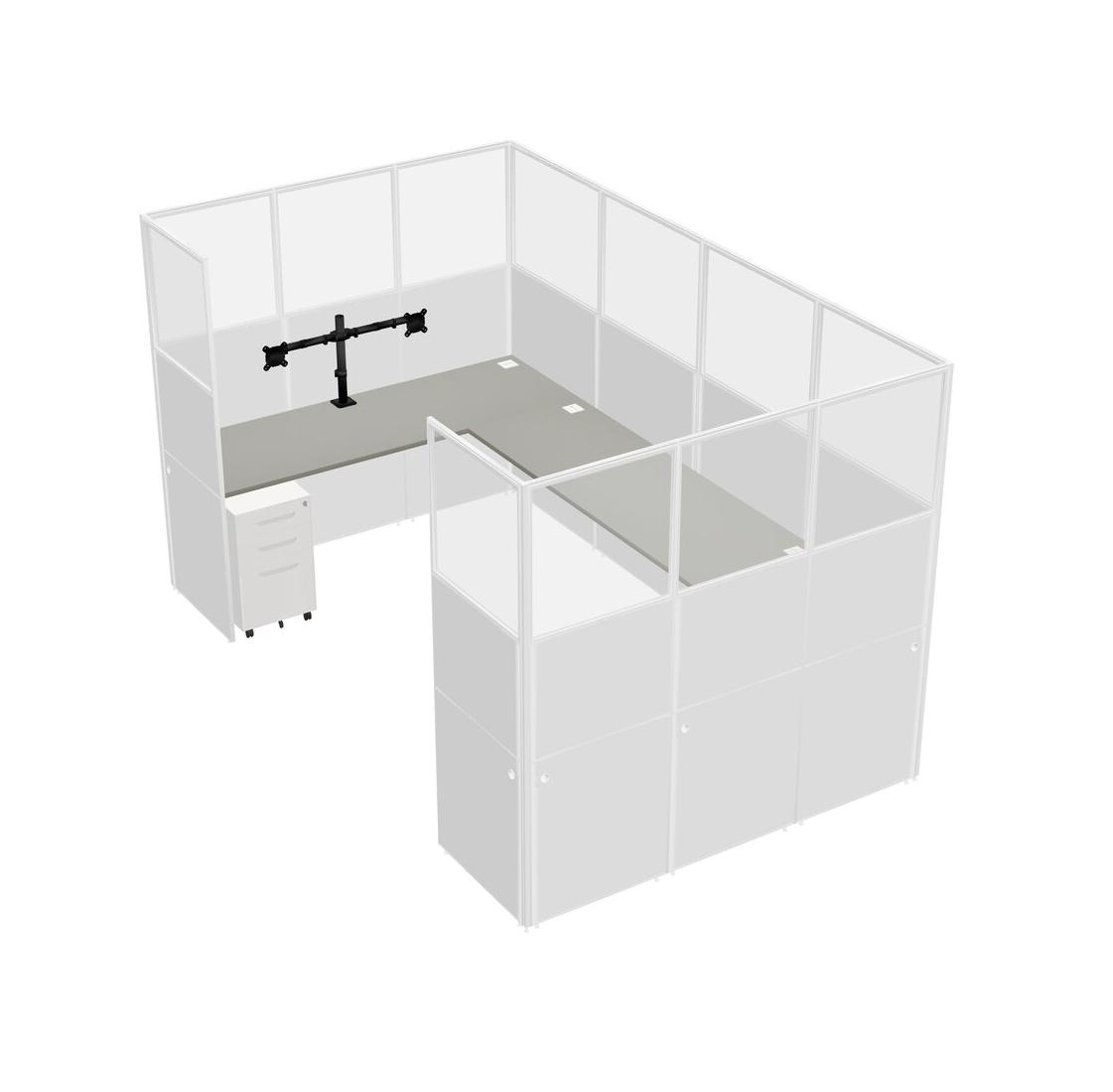 Grey Shadows U-shaped Panel System For 1 Person + Monitor Arm (double Arms) + Metal Mobile Drawers For 1 User(s)