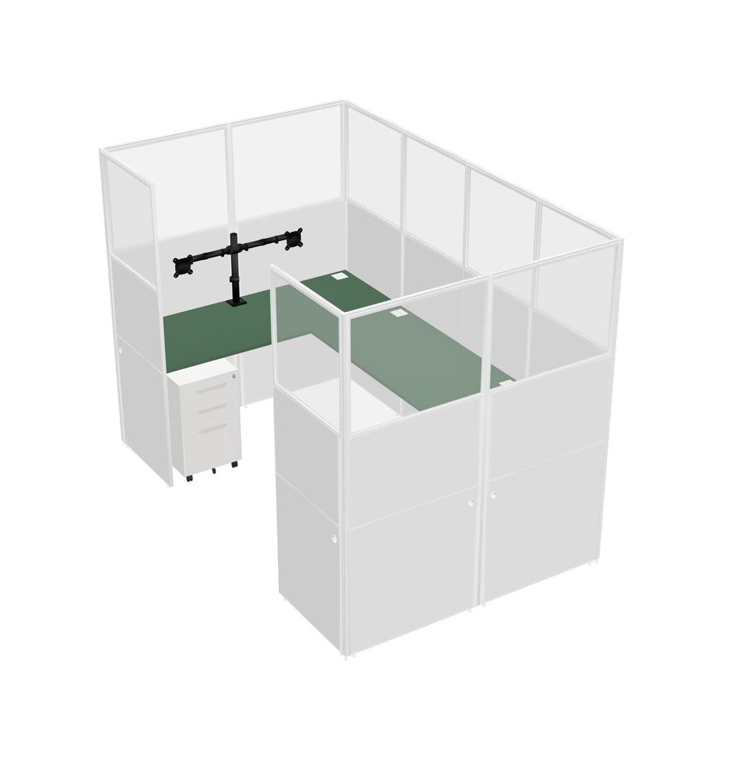 Green U-shaped Panel System For 1 Person + Monitor Arm (double Arms) + Metal Mobile Drawers For 1 User(s)
