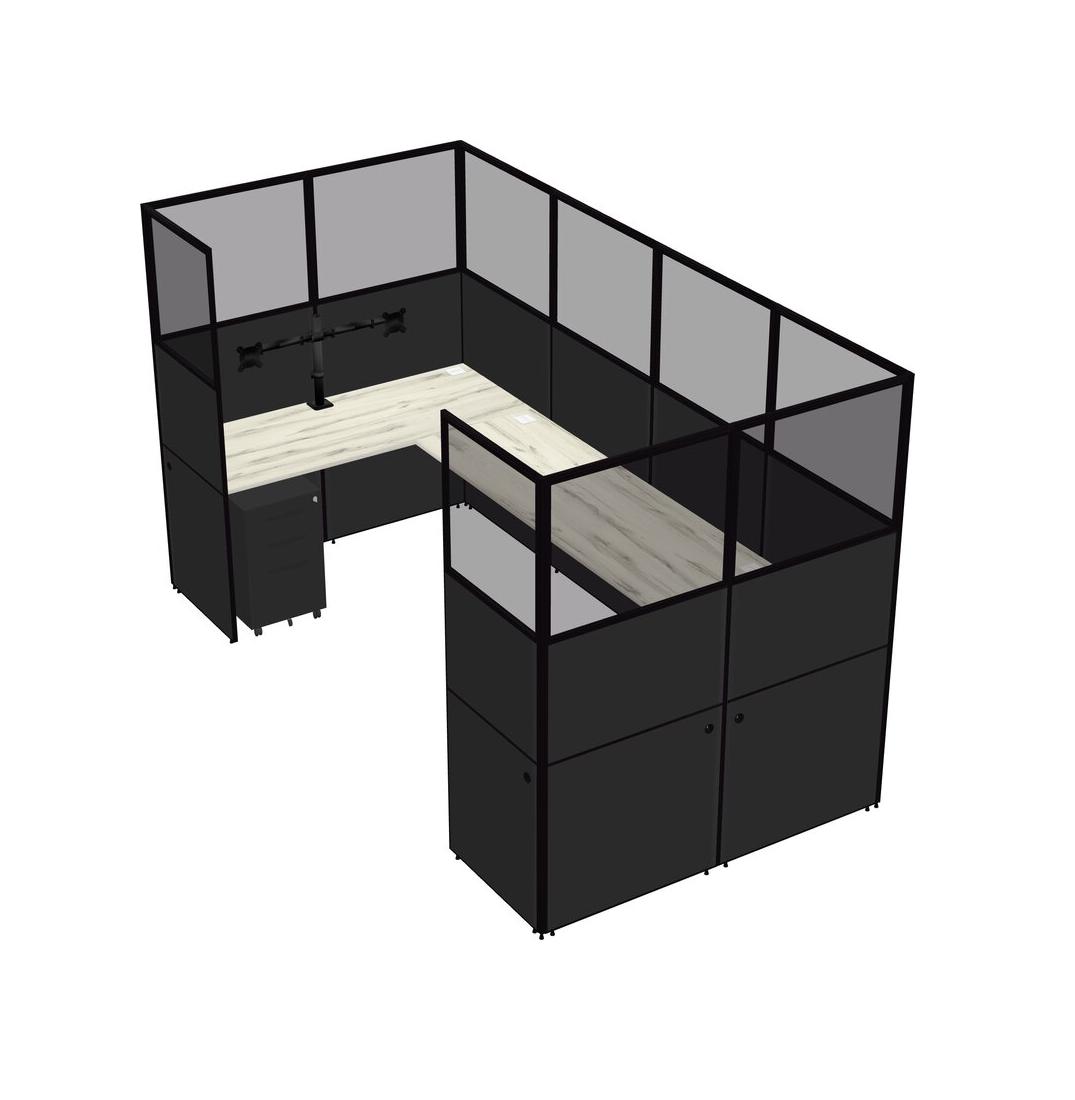 Heinne Holz U-shaped Panel System For 1 Person + Monitor Arm (double Arms) + Metal Mobile Drawers For 1 User(s)