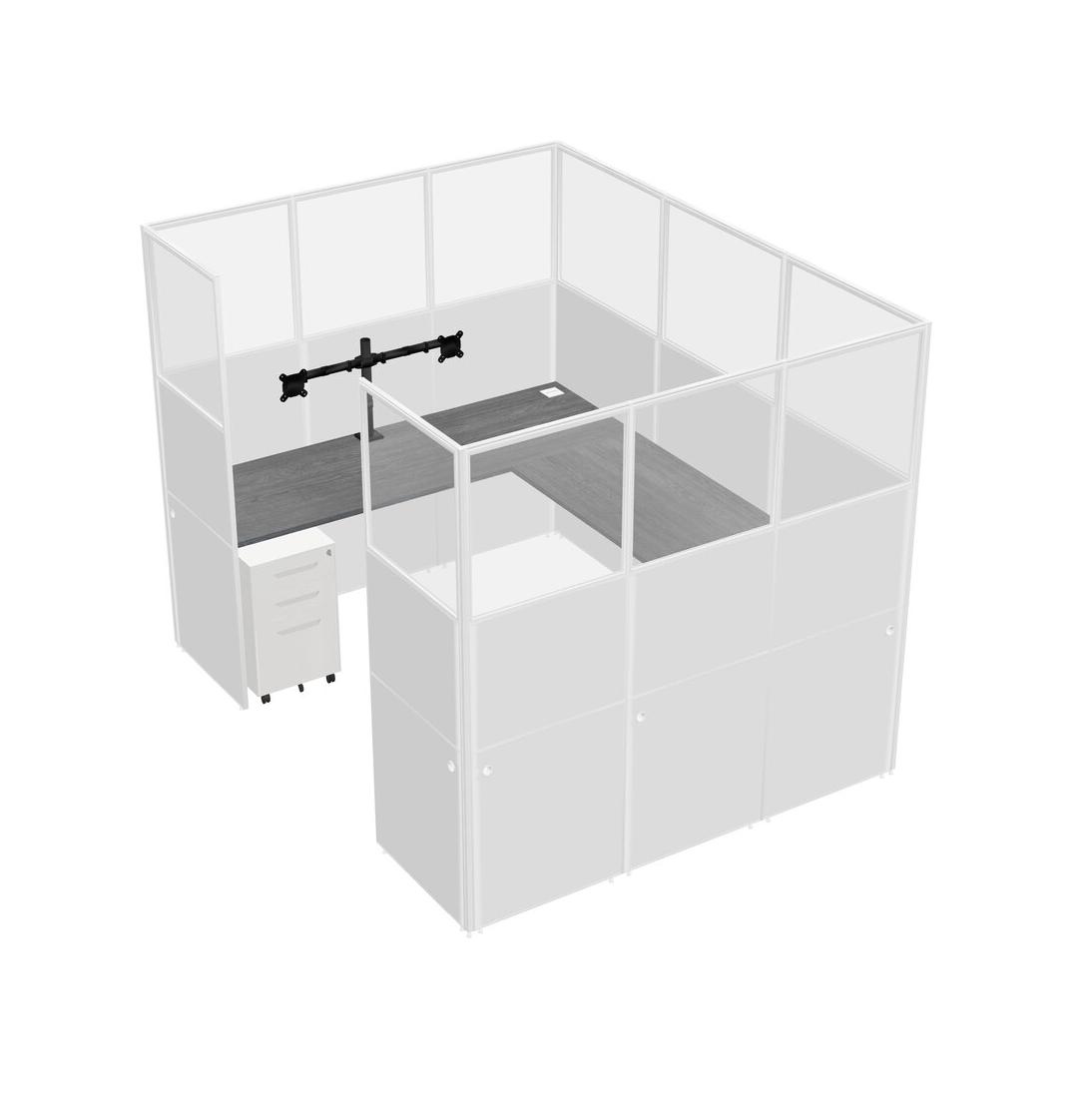 Grey U-shaped Panel System For 1 Person + Monitor Arm (double Arms) + Metal Mobile Drawers For 1 User(s)