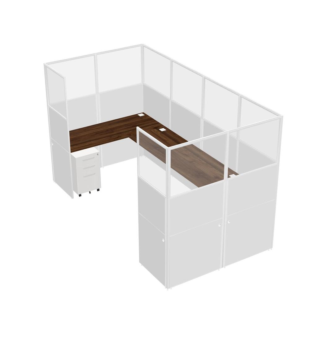 Columbia Walnut U-shaped Panel System For 1 Person + Metal Mobile Drawers For 1 User(s)