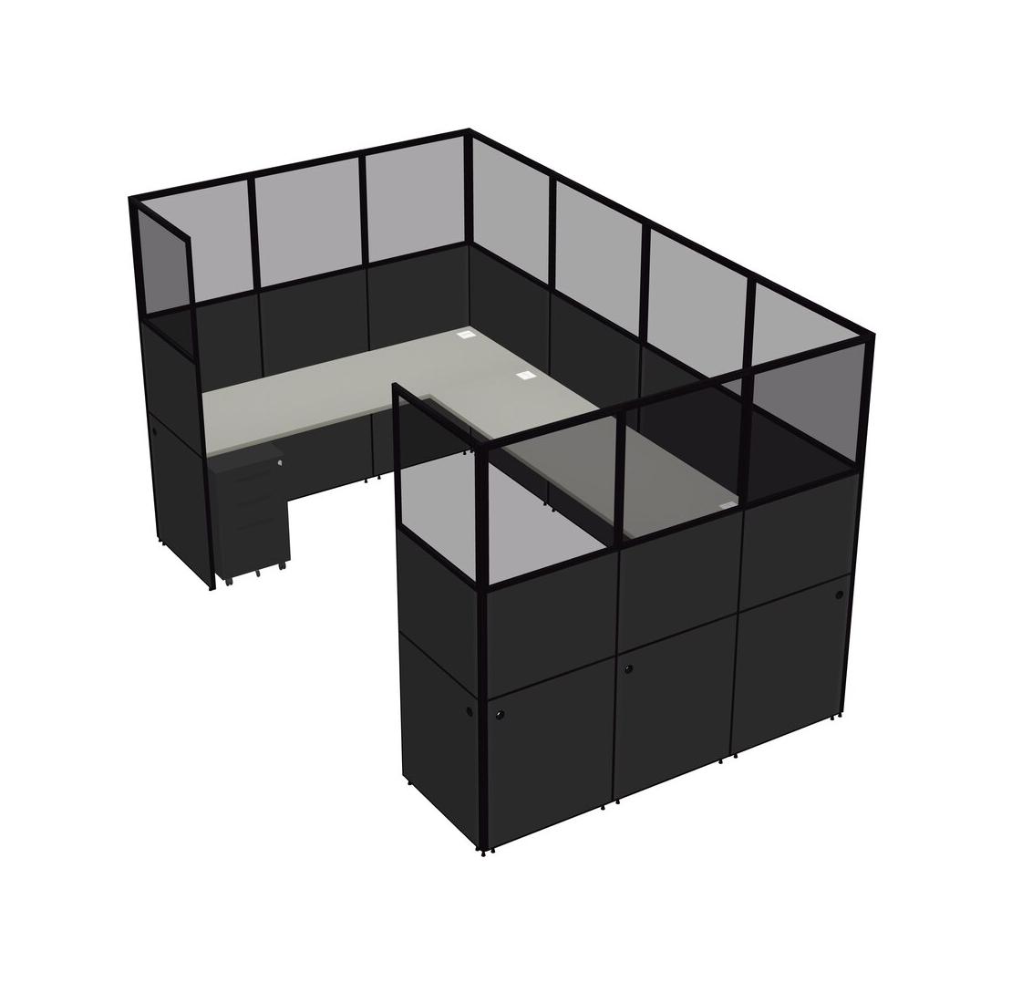 Grey Shadows U-shaped Panel System For 1 Person + Metal Mobile Drawers For 1 User(s)
