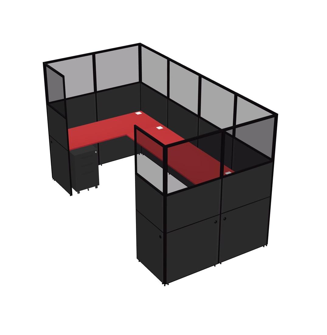 Prism Red U-shaped Panel System For 1 Person + Metal Mobile Drawers For 1 User(s)