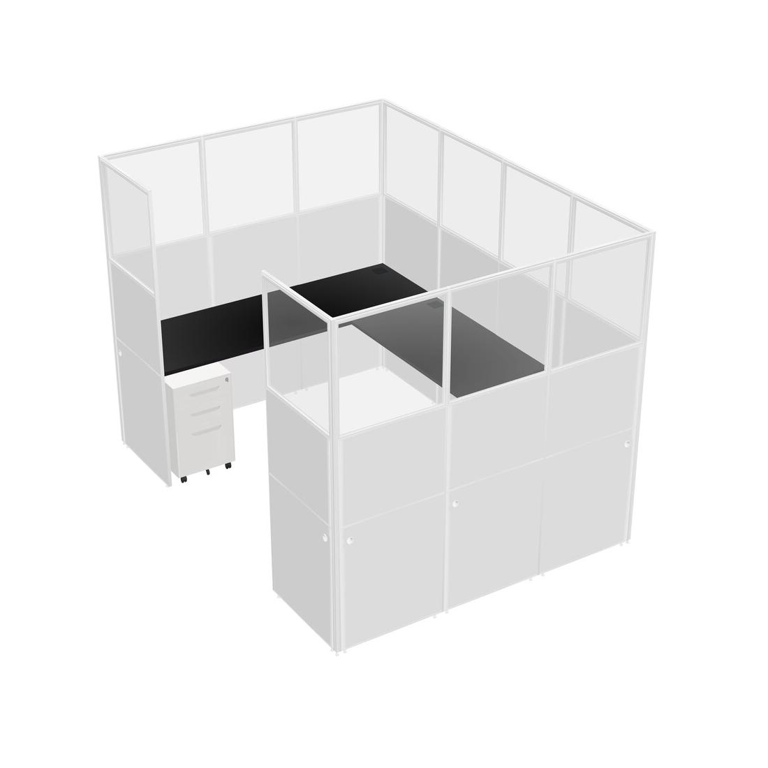 Black U-shaped Panel System For 1 Person + Metal Mobile Drawers For 1 User(s)