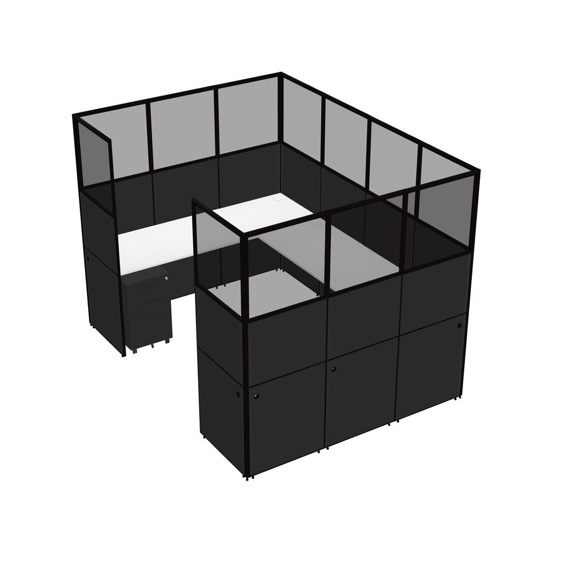 White U-shaped Panel System For 1 Person + Metal Mobile Drawers For 1 User(s)