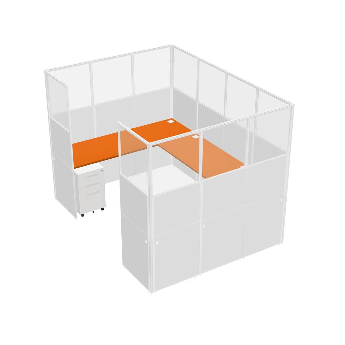 Orange U-shaped Panel System For 1 Person + Metal Mobile Drawers For 1 User(s)