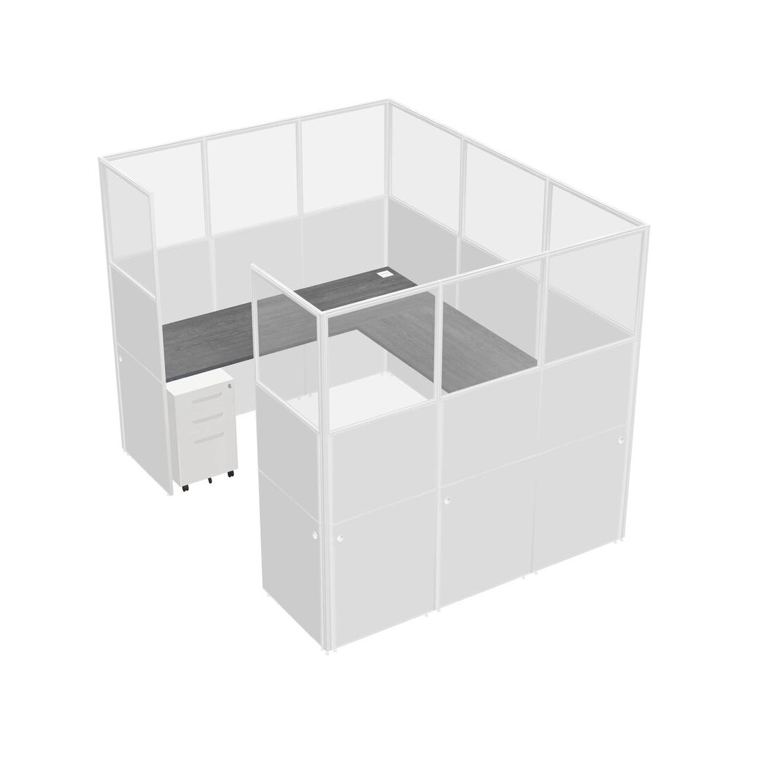 Grey U-shaped Panel System For 1 Person + Metal Mobile Drawers For 1 User(s)