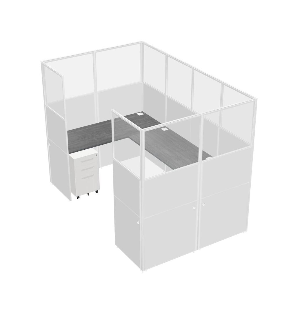 Grey U-shaped Panel System For 1 Person + Metal Mobile Drawers For 1 User(s)