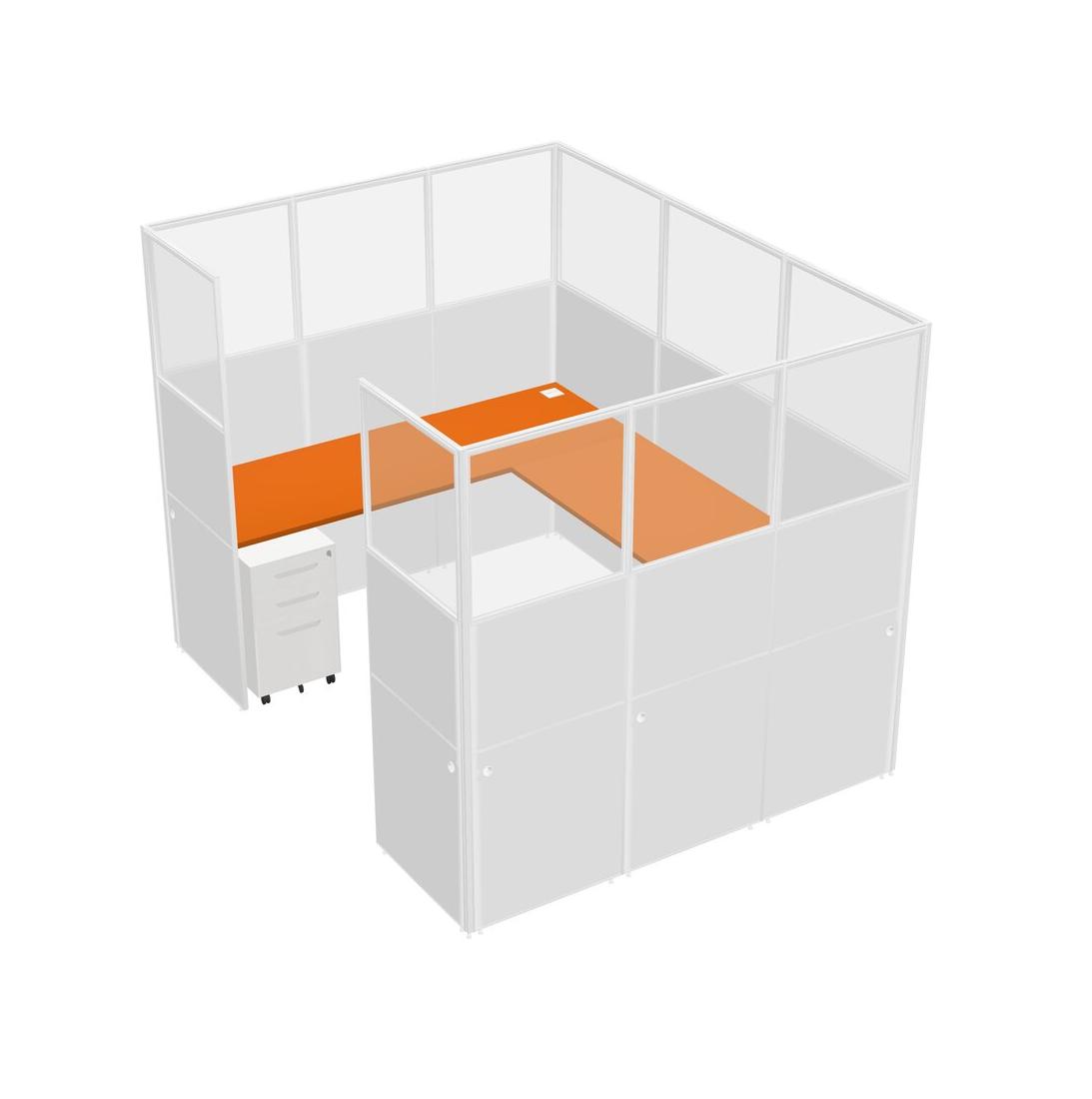 Orange U-shaped Panel System For 1 Person + Metal Mobile Drawers For 1 User(s)