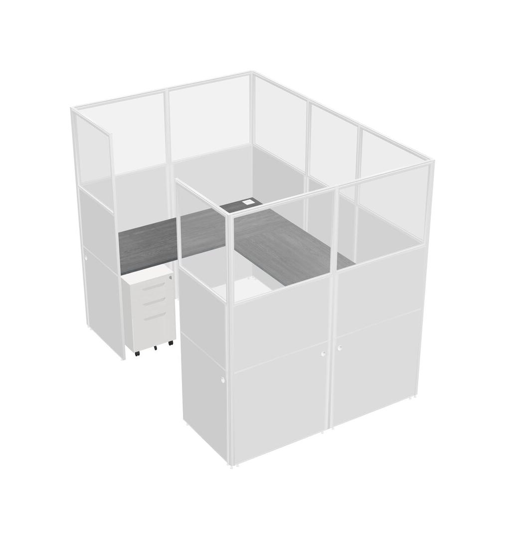 Grey U-shaped Panel System For 1 Person + Metal Mobile Drawers For 1 User(s)