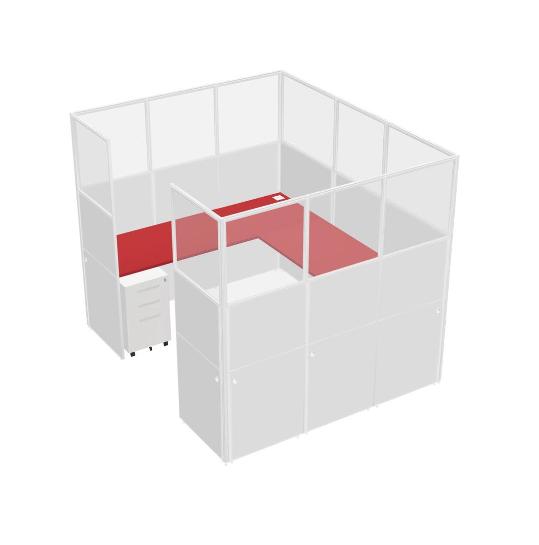 Prism Red U-shaped Panel System For 1 Person + Metal Mobile Drawers For 1 User(s)
