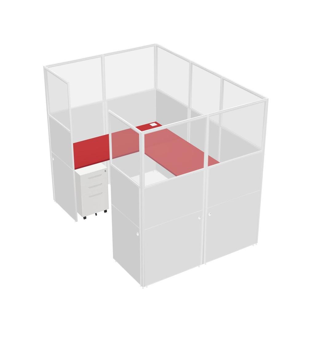 Prism Red U-shaped Panel System For 1 Person + Metal Mobile Drawers For 1 User(s)