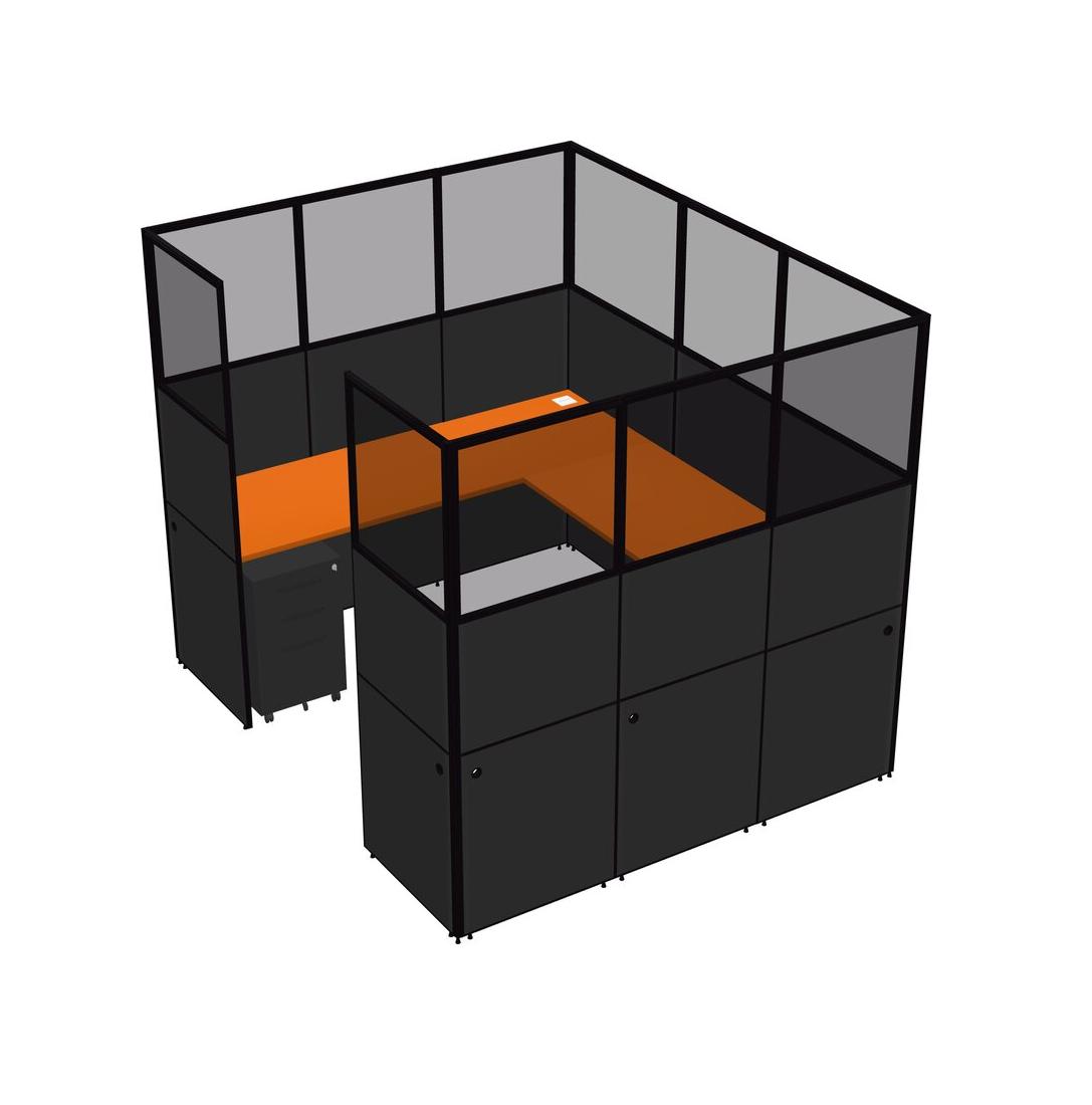 Orange U-shaped Panel System For 1 Person + Metal Mobile Drawers For 1 User(s)