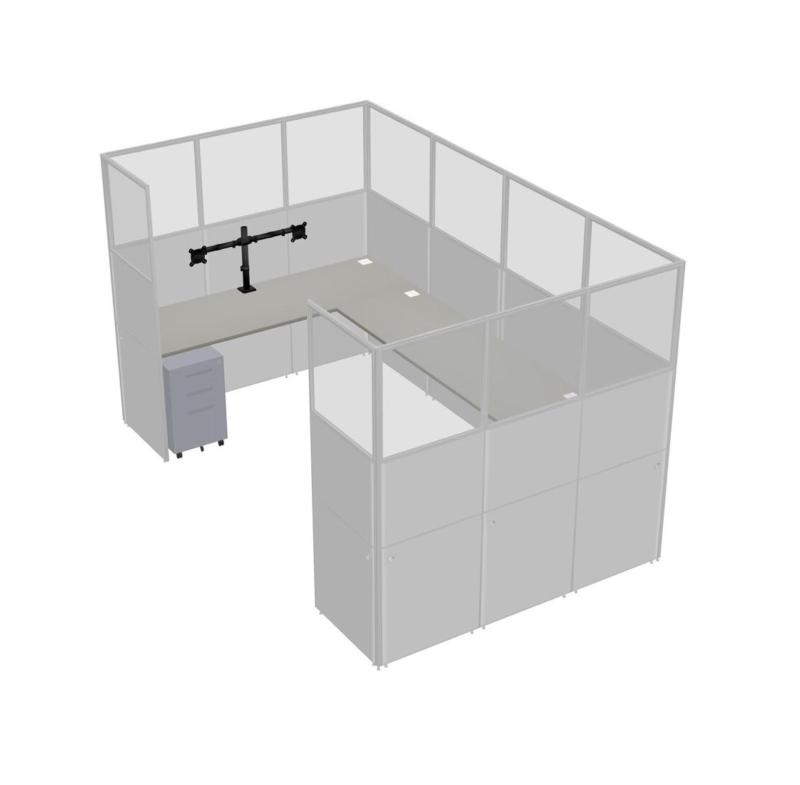 Grey Shadows U-shaped Panel System For 1 Person + Monitor Arm (double Arms) + Metal Mobile Drawers For 1 User(s)