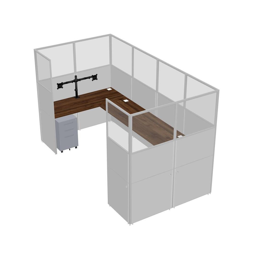 Columbia Walnut U-shaped Panel System For 1 Person + Monitor Arm (double Arms) + Metal Mobile Drawers For 1 User(s)
