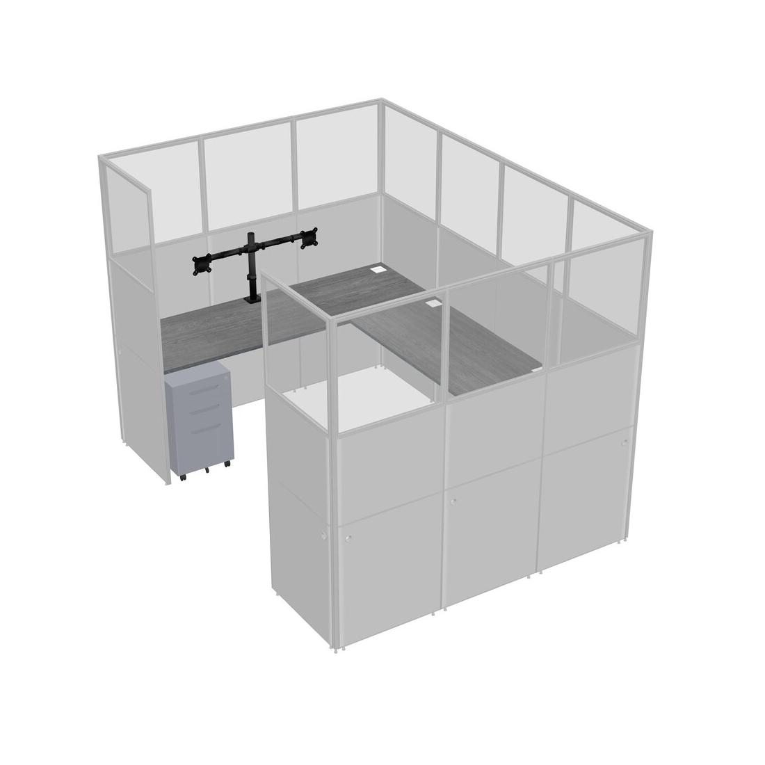 Grey U-shaped Panel System For 1 Person + Monitor Arm (double Arms) + Metal Mobile Drawers For 1 User(s)