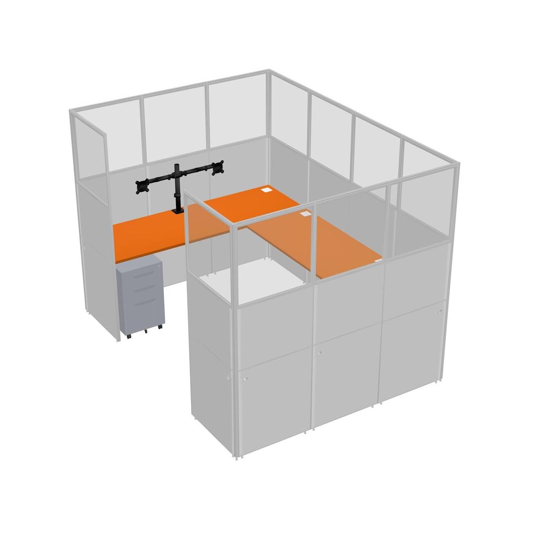 Orange U-shaped Panel System For 1 Person + Monitor Arm (double Arms) + Metal Mobile Drawers For 1 User(s)