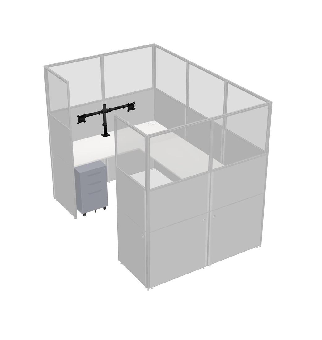 White U-shaped Panel System For 1 Person + Monitor Arm (double Arms) + Metal Mobile Drawers For 1 User(s)
