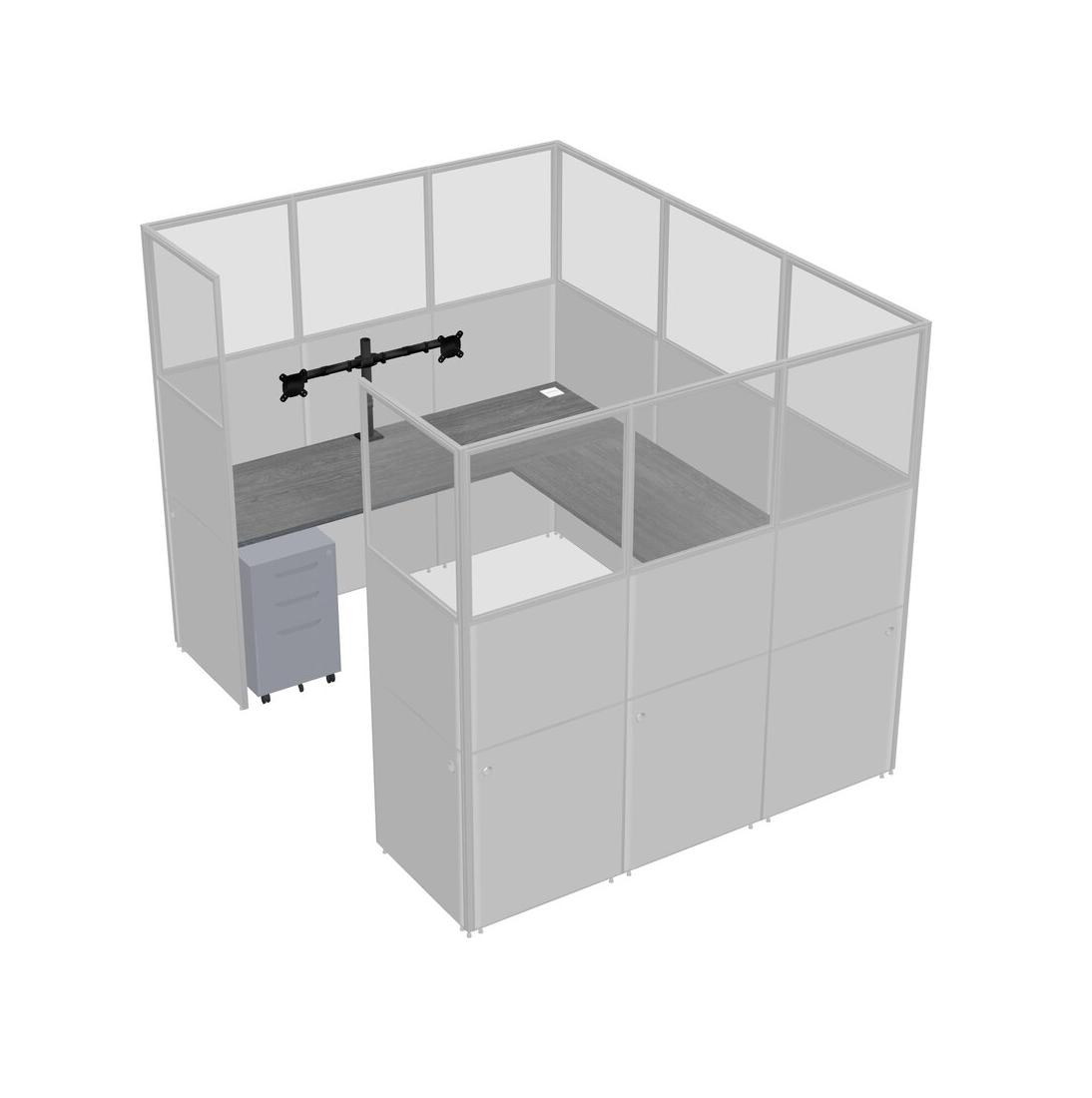 Grey U-shaped Panel System For 1 Person + Monitor Arm (double Arms) + Metal Mobile Drawers For 1 User(s)