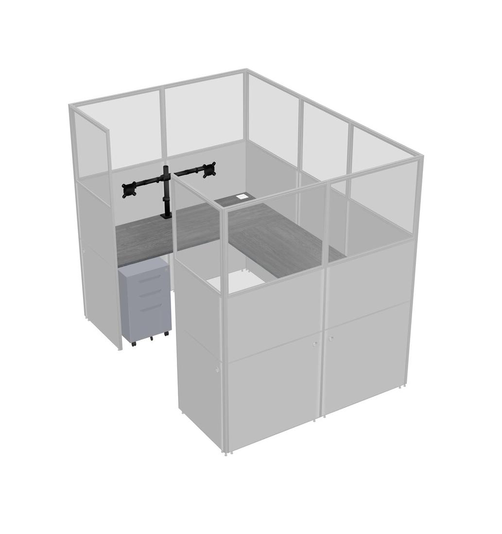 Grey U-shaped Panel System For 1 Person + Monitor Arm (double Arms) + Metal Mobile Drawers For 1 User(s)