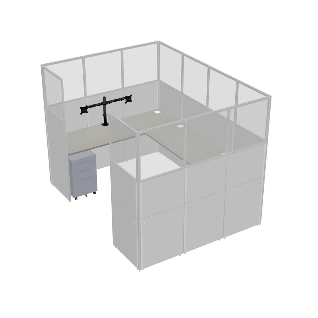 Grey Shadows U-shaped Panel System For 1 Person + Monitor Arm (double Arms) + Metal Mobile Drawers For 1 User(s)