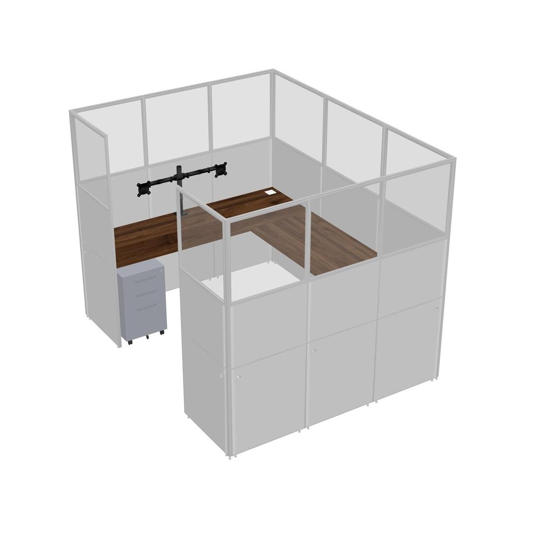 Columbia Walnut U-shaped Panel System For 1 Person + Monitor Arm (double Arms) + Metal Mobile Drawers For 1 User(s)