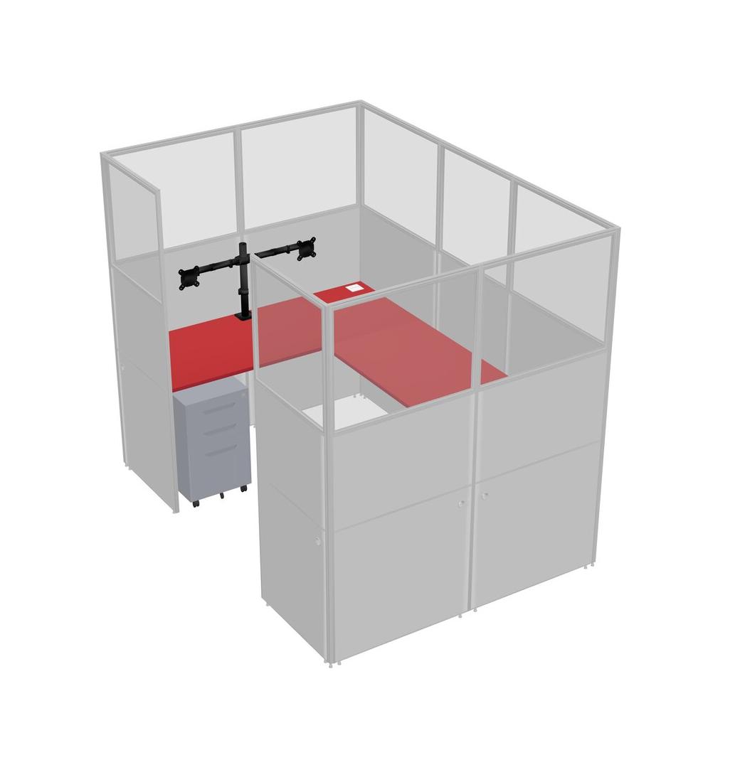 Prism Red U-shaped Panel System For 1 Person + Monitor Arm (double Arms) + Metal Mobile Drawers For 1 User(s)