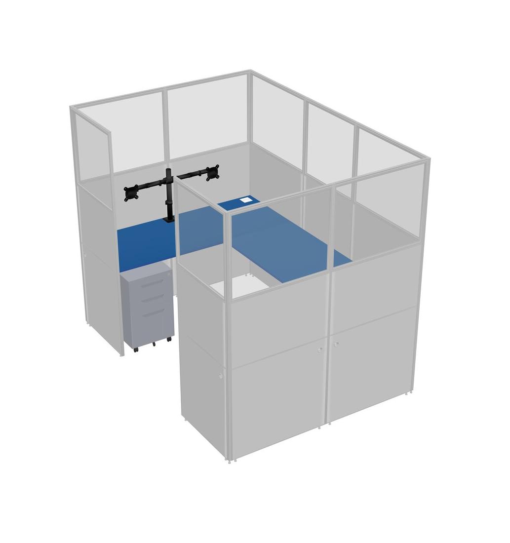 Prism Blue U-shaped Panel System For 1 Person + Monitor Arm (double Arms) + Metal Mobile Drawers For 1 User(s)
