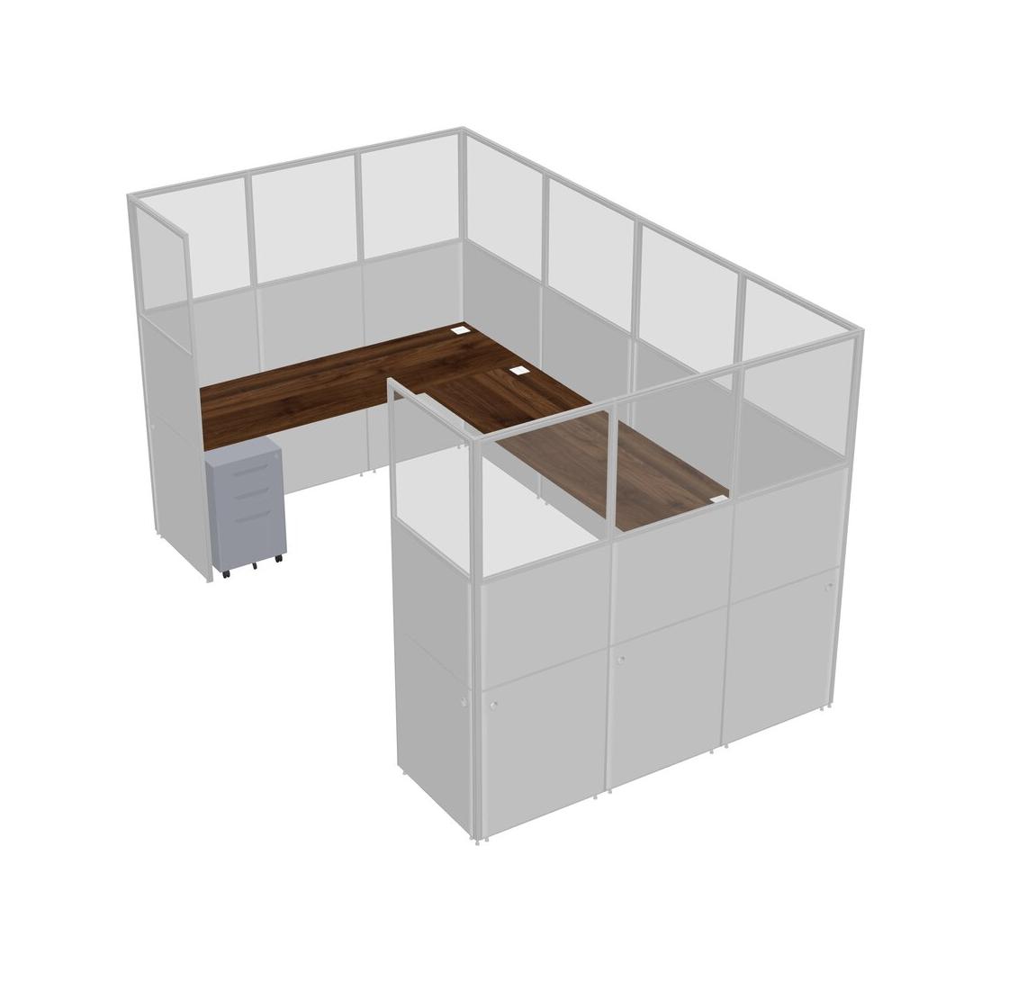 Columbia Walnut U-shaped Panel System For 1 Person + Metal Mobile Drawers For 1 User(s)