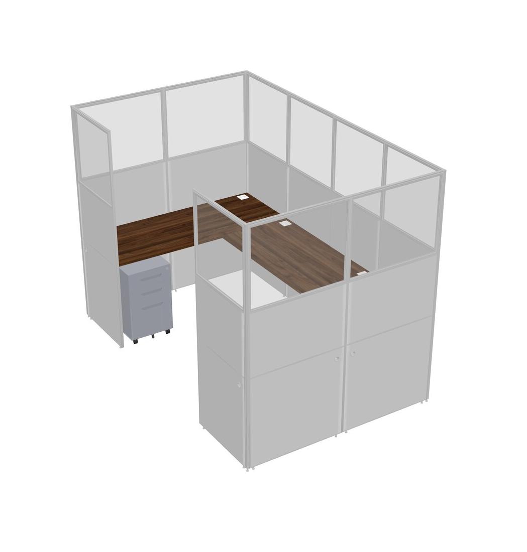 Columbia Walnut U-shaped Panel System For 1 Person + Metal Mobile Drawers For 1 User(s)