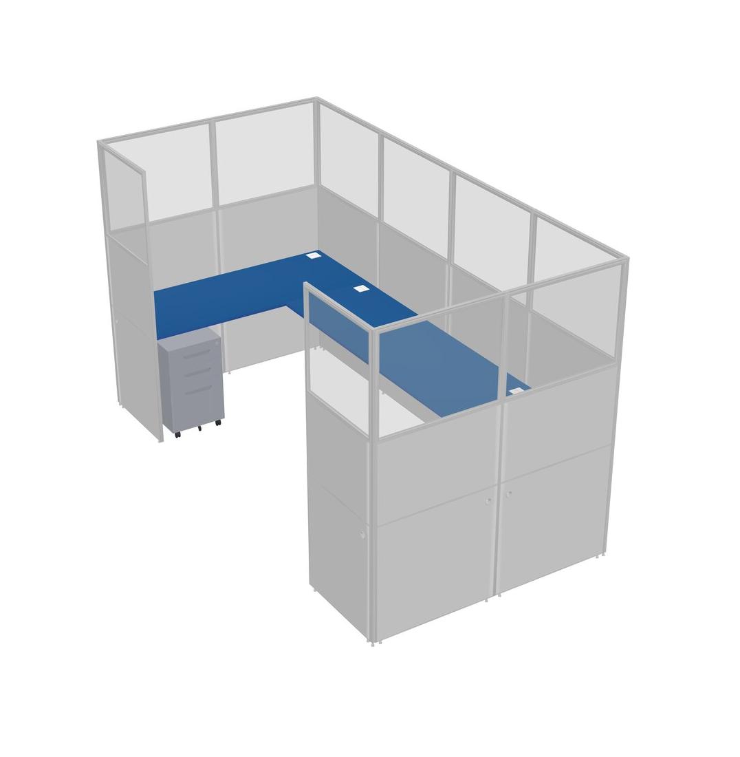 Prism Blue U-shaped Panel System For 1 Person + Metal Mobile Drawers For 1 User(s)