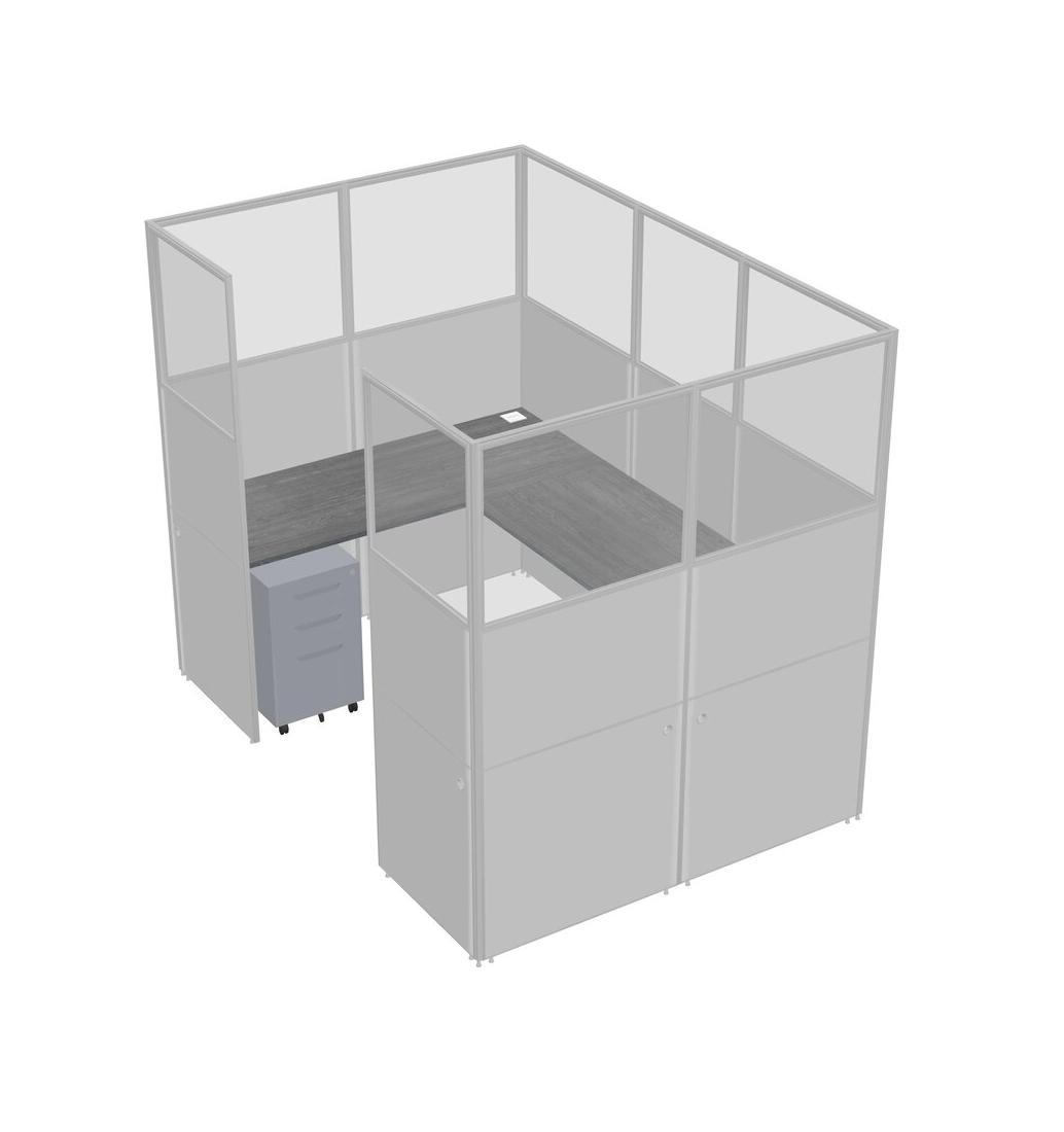 Grey U-shaped Panel System For 1 Person + Metal Mobile Drawers For 1 User(s)