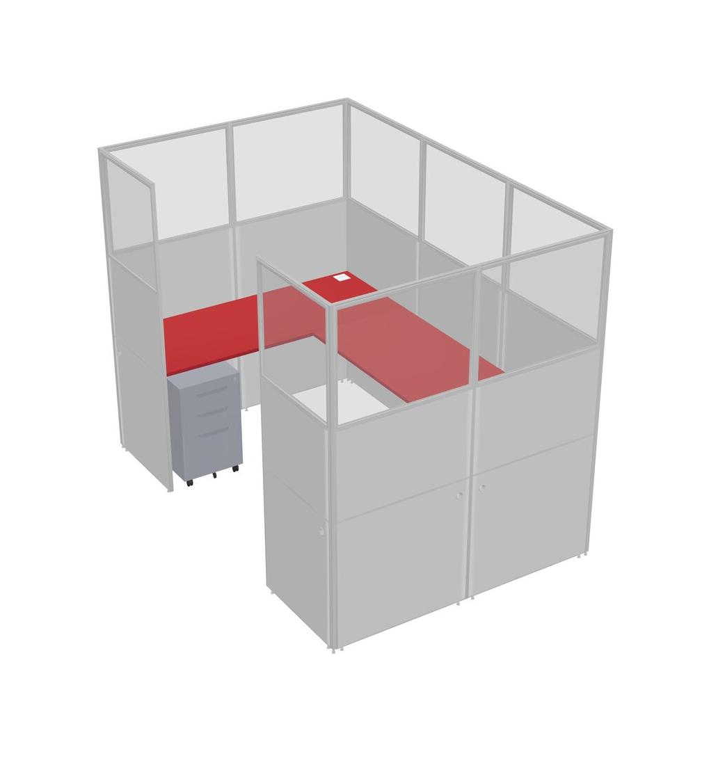 Prism Red U-shaped Panel System For 1 Person + Metal Mobile Drawers For 1 User(s)