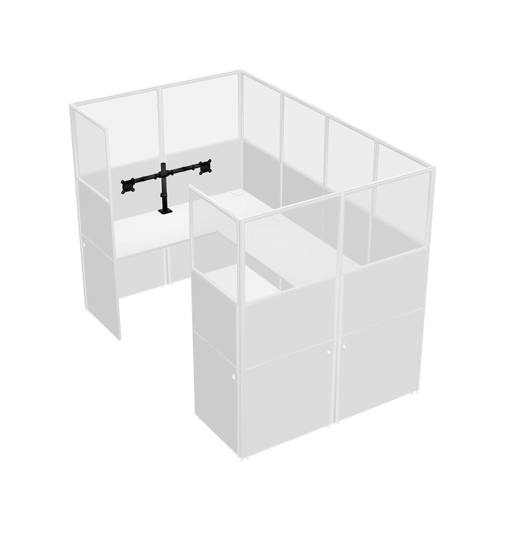 White U-shaped Panel System For 1 Person + Monitor Arm (double Arms) For 1 User(s)