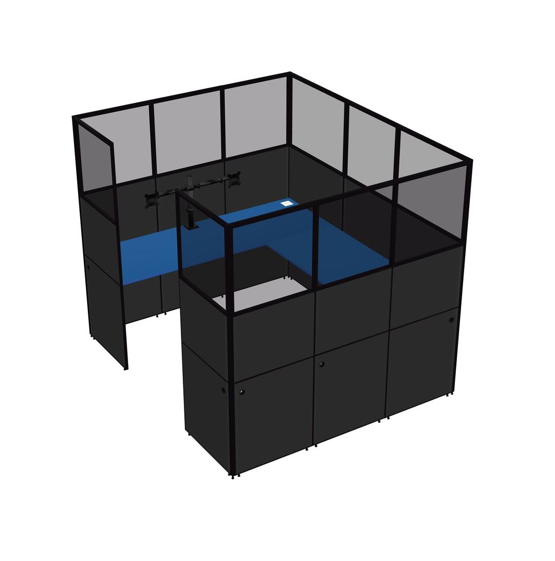 Prism Blue U-shaped Panel System For 1 Person + Monitor Arm (double Arms) For 1 User(s)