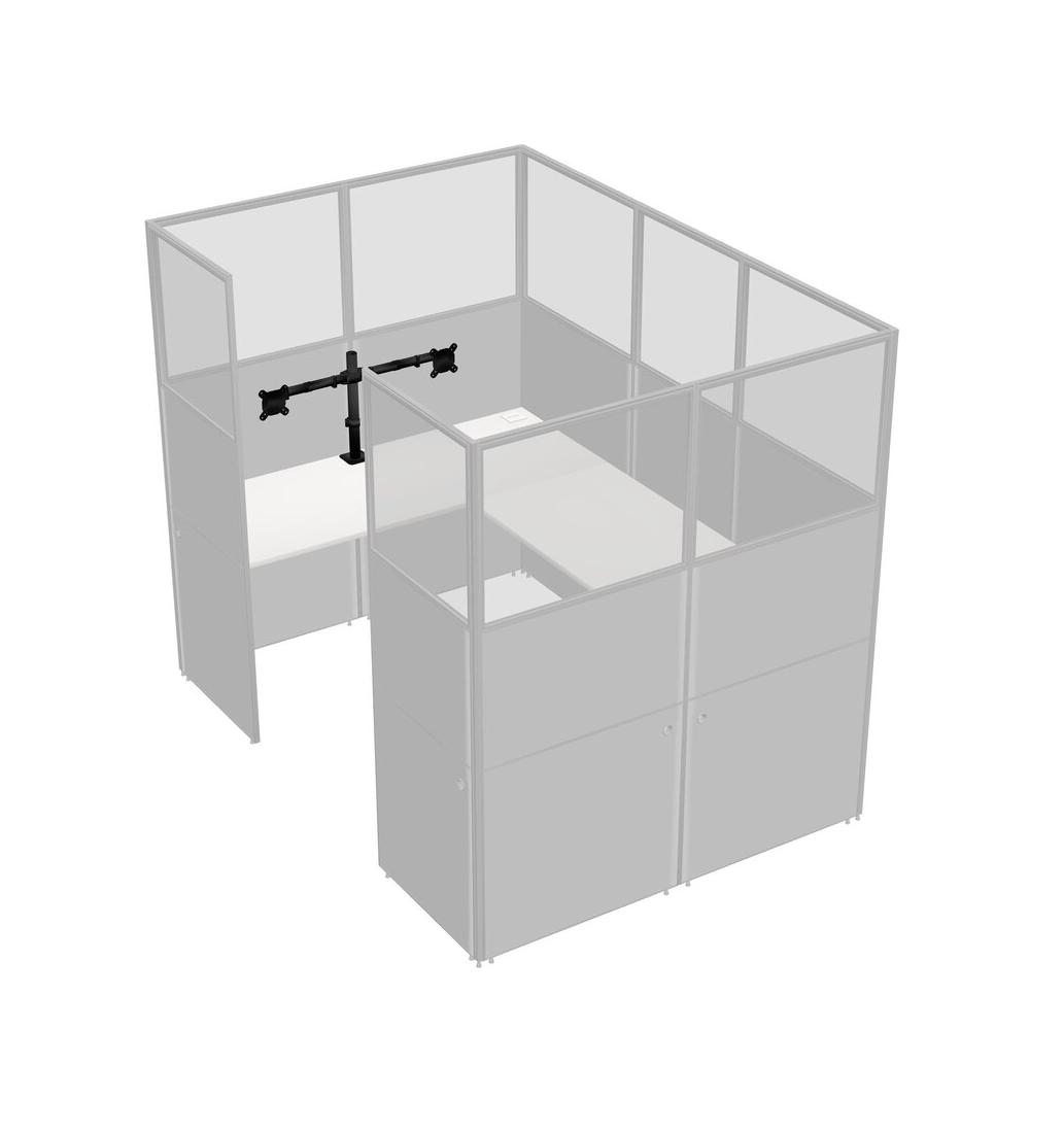 White U-shaped Panel System For 1 Person + Monitor Arm (double Arms) For 1 User(s)