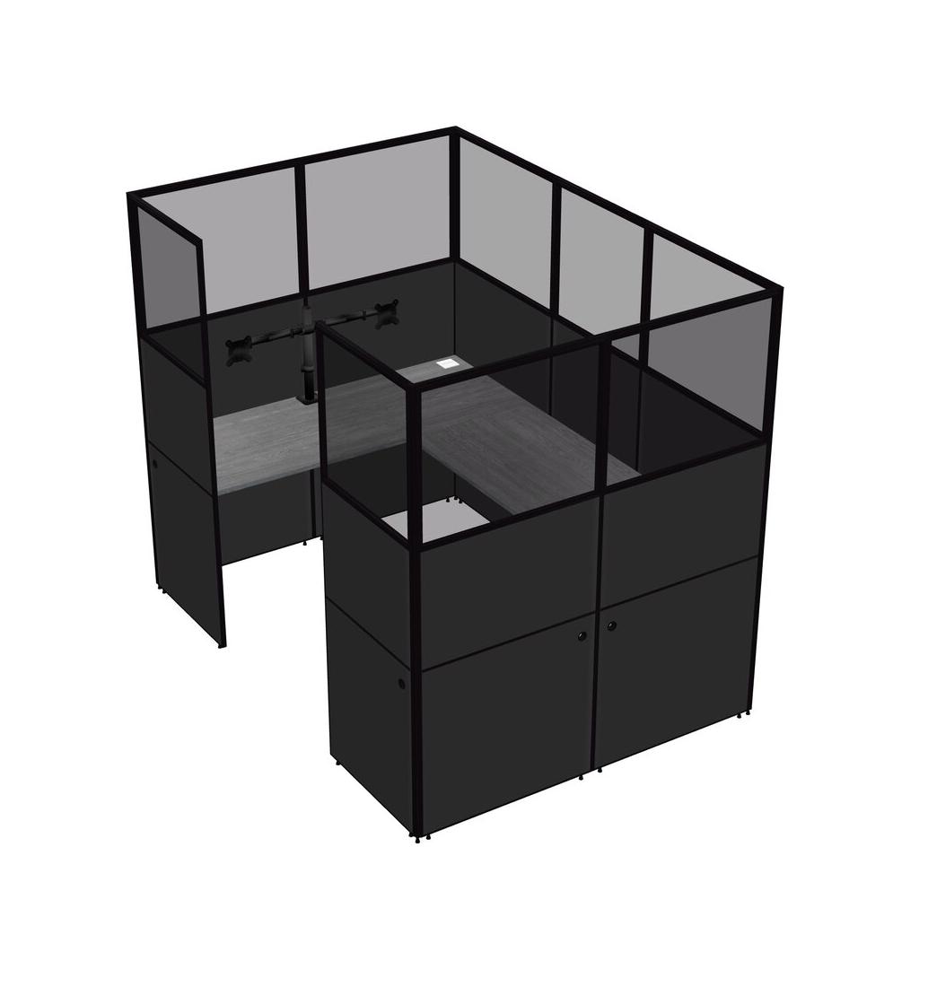 Grey U-shaped Panel System For 1 Person + Monitor Arm (double Arms) For 1 User(s)