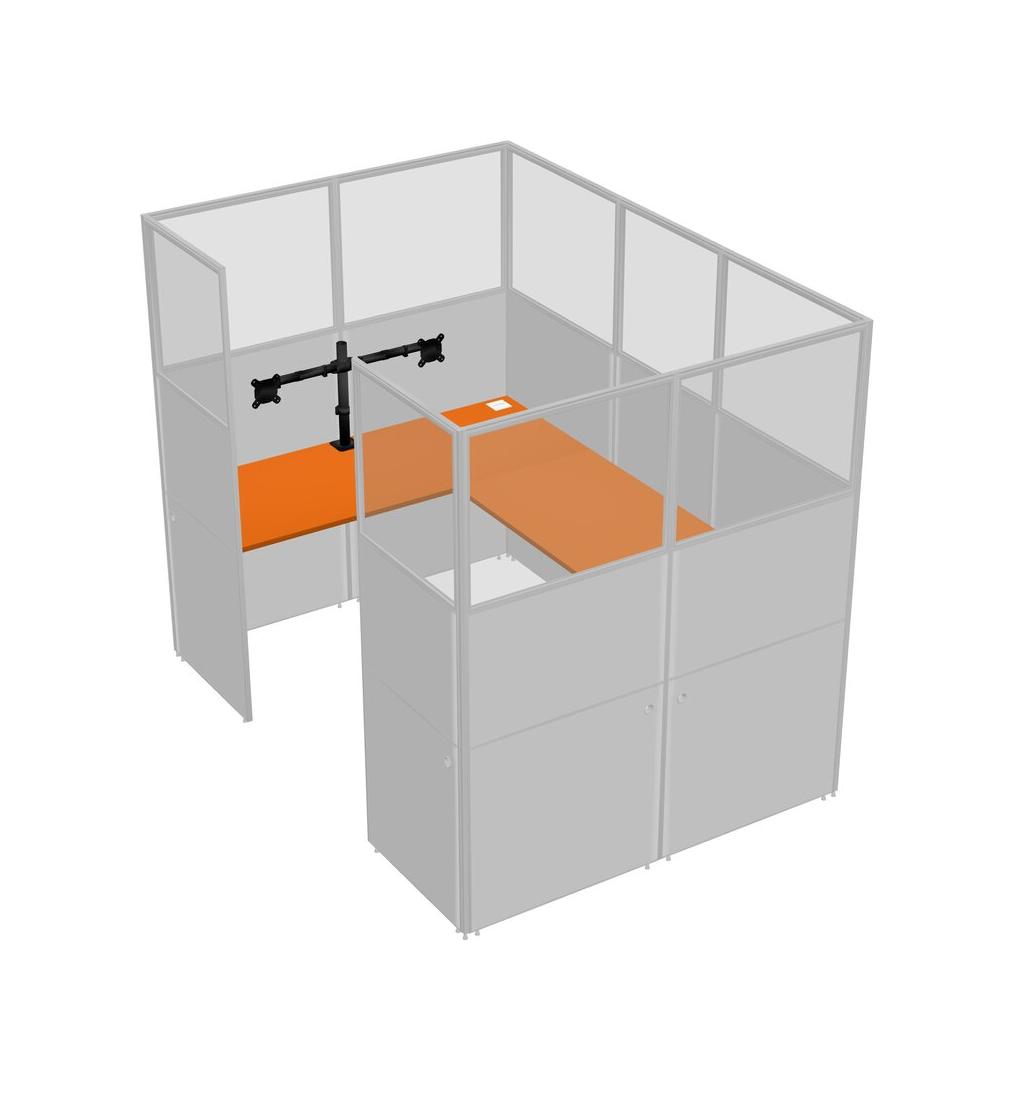 Orange U-shaped Panel System For 1 Person + Monitor Arm (double Arms) For 1 User(s)