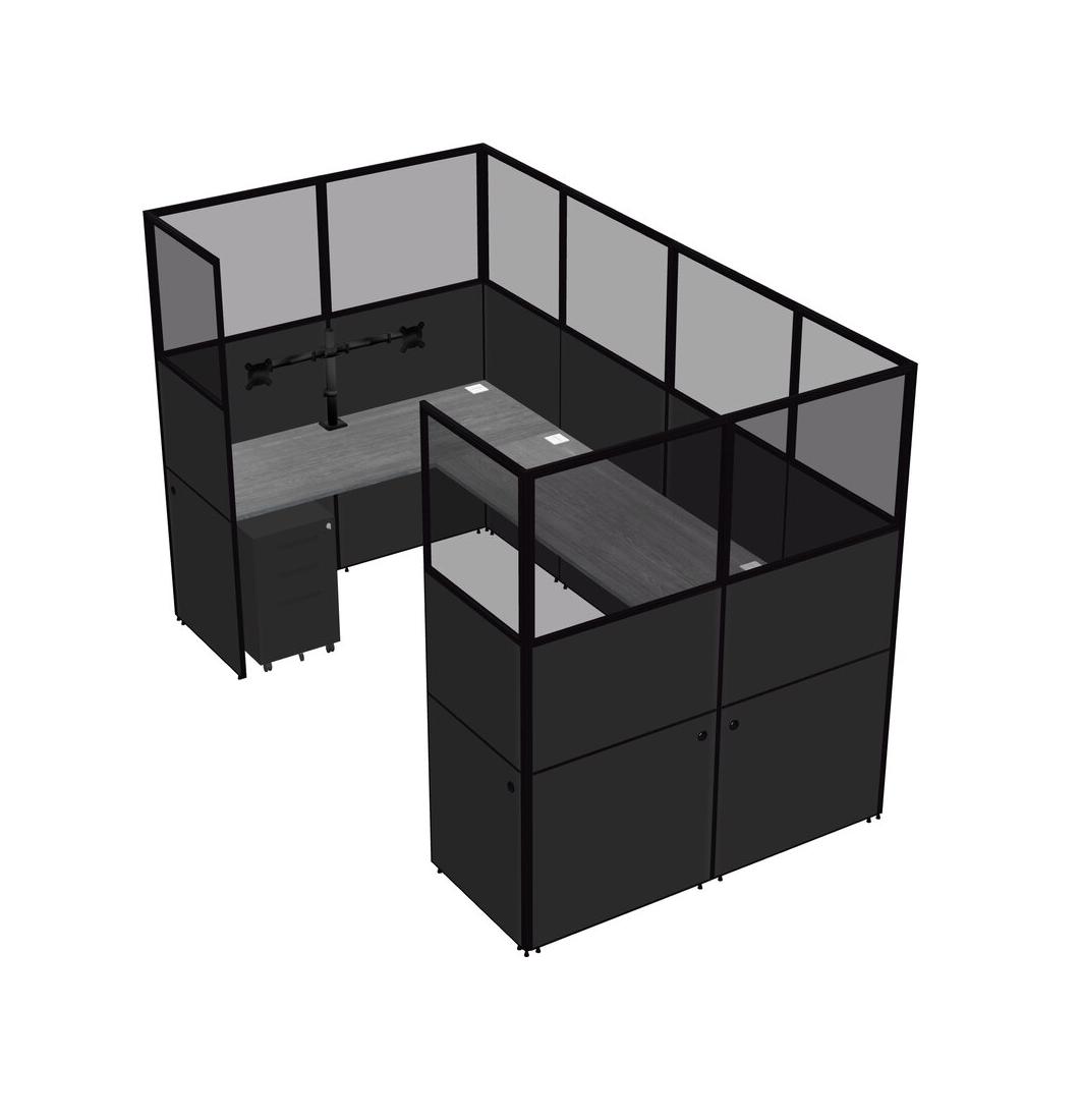 Grey U-shaped Panel System For 1 Person + Monitor Arm (double Arms) + Metal Mobile Drawers For 1 User(s)