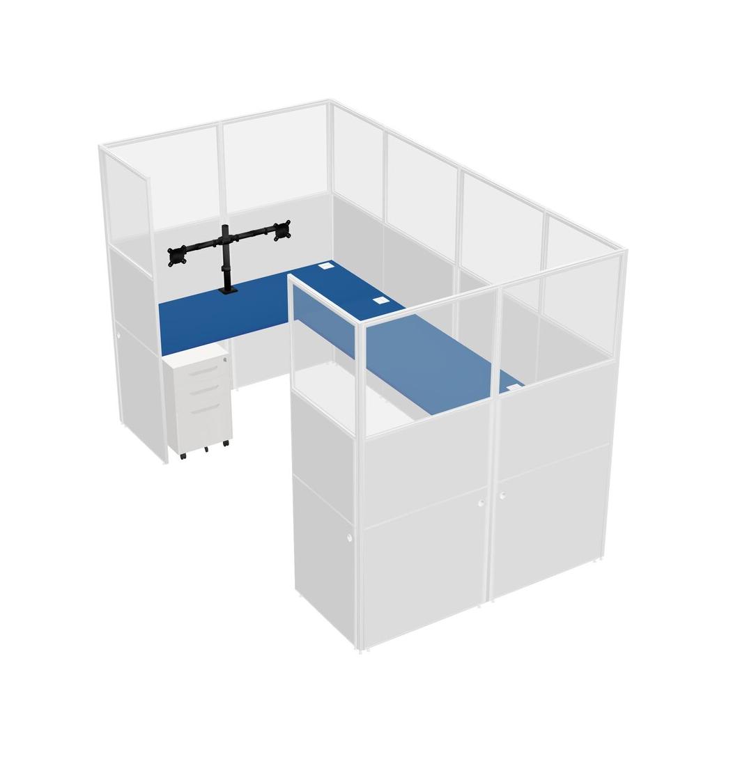 Prism Blue U-shaped Panel System For 1 Person + Monitor Arm (double Arms) + Metal Mobile Drawers For 1 User(s)