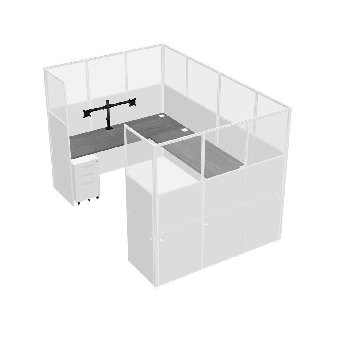Grey U-shaped Panel System For 1 Person + Monitor Arm (double Arms) + Metal Mobile Drawers For 1 User(s)